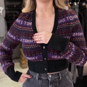 Tommy Jeans – קרדיגן סריג אופנתי לנשים עם דוגמת לוגו אייקונית