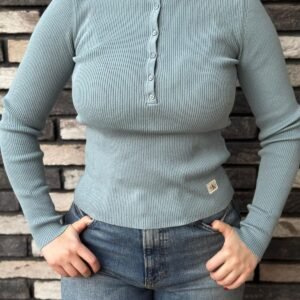 Calvin Klein – חולצת סריג ריב לנשים עם כפתורים בגזרה מחמיאה