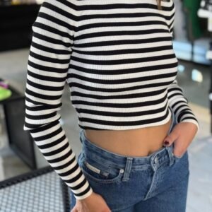 Calvin Klein Jeans – חולצת קרופ פסים עם צווארון גולף