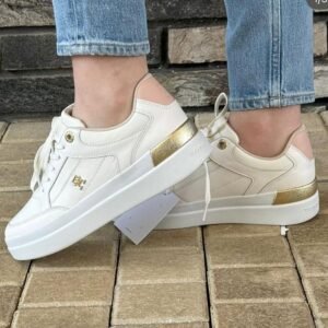 Tommy Hilfiger – סניקרס פלטפורמה לבן עם נגיעות זהב
