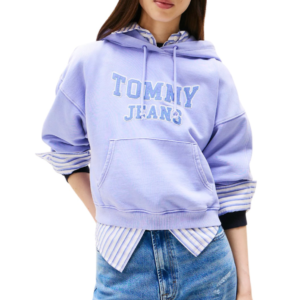 Tommy Jeans – סווטשירט קפוצ’ון לנשים בגזרת אוברסייז עם לוגו רקום