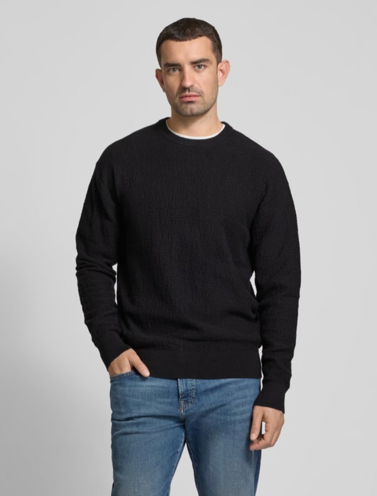 הסריג הקלאסי של Calvin Klein הוא פריט מפתח בארון הגברים המודרני. בעיצוב מינימליסטי, נקי ועל־זמני, הוא משקף את ה-DNA האייקוני של המותג: איכות בלתי מתפשרת, קווים מדויקים וסטייל מתוחכם.