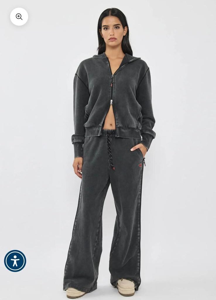 Replay Washed Black Lounge Set – Zip Hoodie & Wide Pants