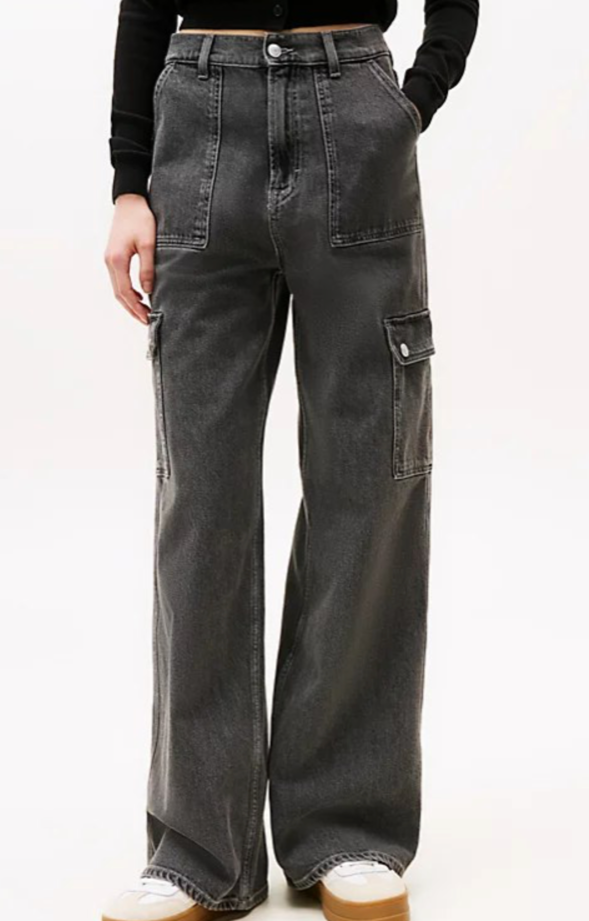 מכנסי ג׳ינס רחבים לנשים מבית Tommy Jeans בעיצוב קרגו טרנדי, לשילוב מושלם בין נוחות, סטייל ואופי אורבני.